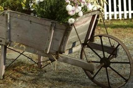 Использование старинных деревянных тачек