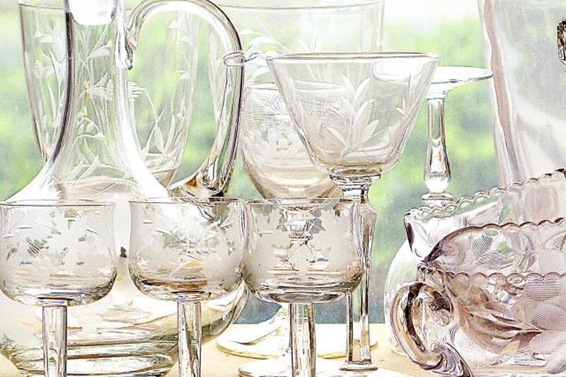 - Юбилей Lancaster Glass Company (1920-1930-е гг.) — Юбилейный узор Lancaster Glass Company невероятно тонкий, с цветочными гравюрами вокруг корпуса бокалов; имейте в виду, что компания Standard Glass Manufacturing Company также имела свой собственный разрез этого дизайна, поэтому вам нужно проверить маркировку, чтобы увидеть, какая у вас стеклянная посуда.