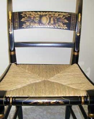 Стулья Хичкока обычно окрашивались в черный, коричневато-черный или темно-зеленый цвет. У них булавочная полоска желтой охры с золотыми полукольцами на передних лапах. Подробные трафареты, окрашенные металлическими цветами, такими как красный, золотой, синий и белый, можно найти на спинке и по бокам стульев. Дизайн включает листья, цветы, корзины с фруктами и рога изобилия.