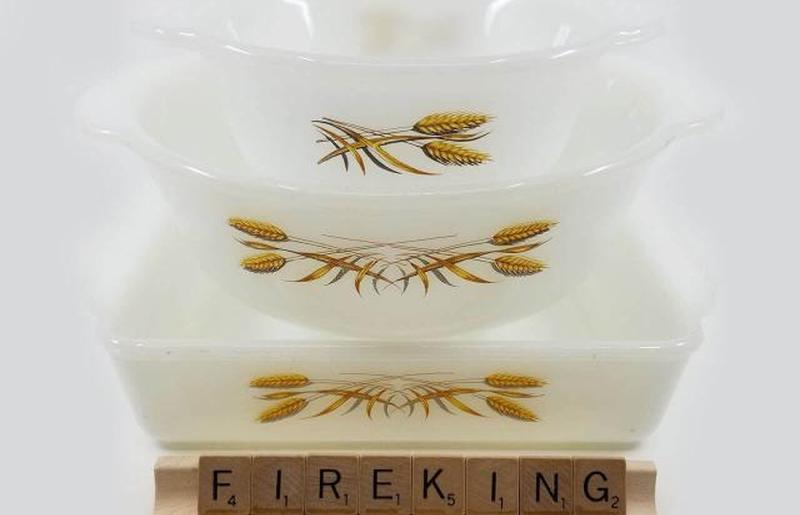 Еще один уникальный узор Fire-King имитирует рыбную чешую и отражает мельчайшую текстуру на краях этих блюд.
