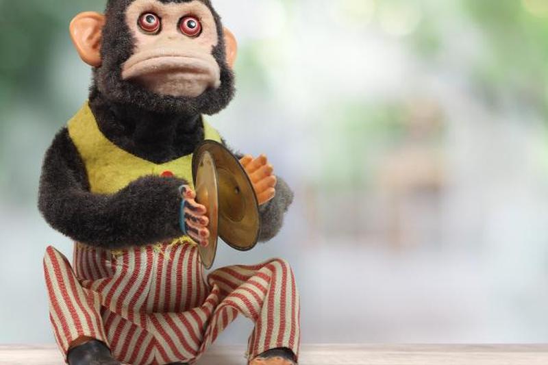 Более новая версия классического приматы, Magic Monkey играет на тарелках, пока он бегает по полу. Эта обезьяна с пластиковым лицом, издающая шимпанзе, доступна на StockCalifornia.com .