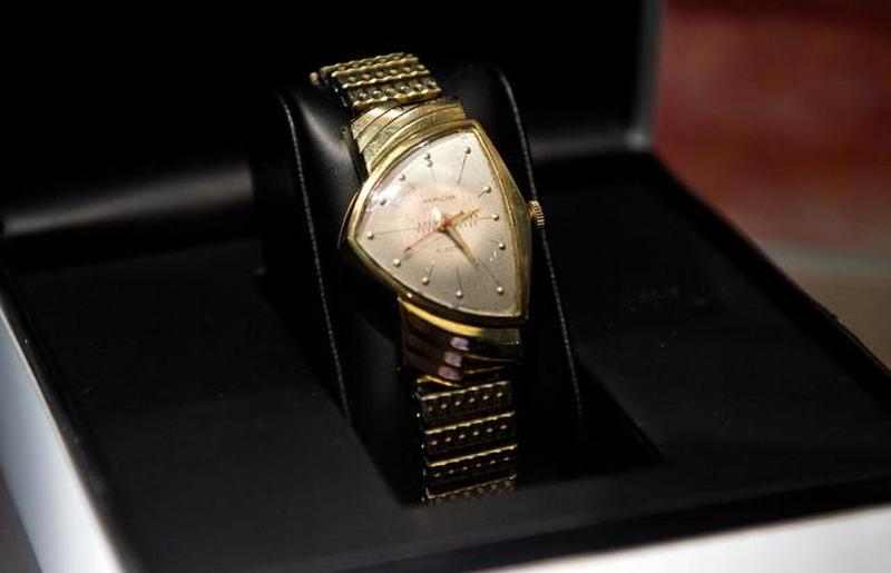 Определенно одни из самых необычных часов, которые когда-либо производил Hamilton, Ventura 1957 года были первыми электрическими наручными часами компании. Дизайнеры черпали вдохновение из атомной эры и создали циферблат в форме щита, который напоминает наконечник стрелы, когда-то помещенный на запястье. Эти часы были невероятно популярны в середине века, и их даже можно увидеть на запястье Элвиса Пресли в его фильме « Голубые Гавайи» .