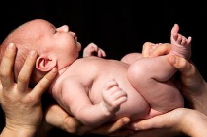 После рождения ребенка погладьте его по носу, чтобы удалить избыток слизи и амниотическую жидкость.