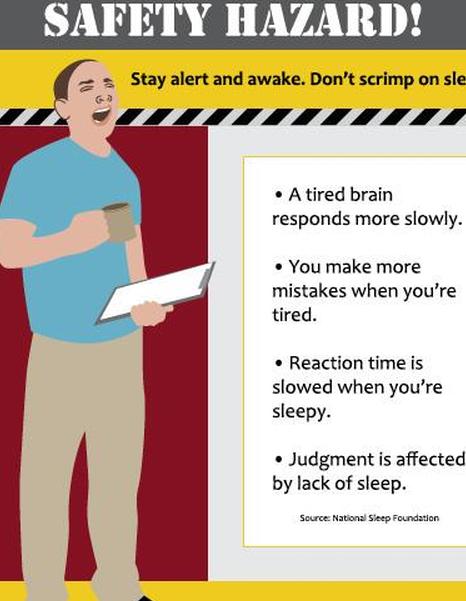 Плакат о безопасности выше напоминает людям, что сонливость может вызвать проблемы, и подчеркивает важность хорошего ночного сна каждый вечер.