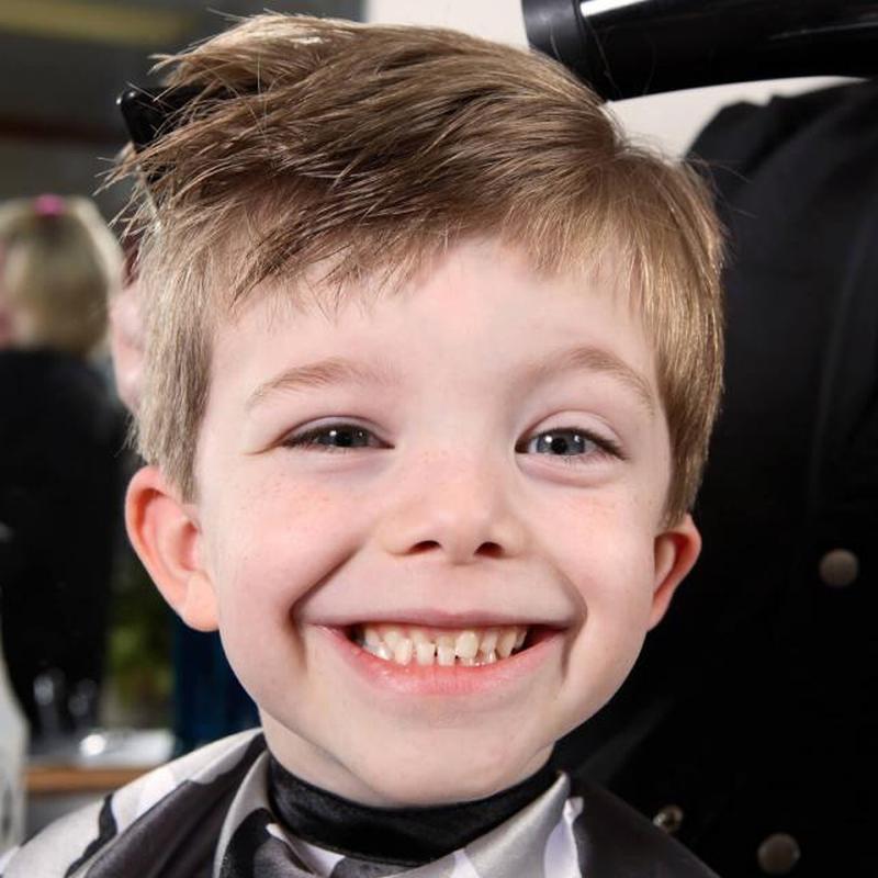 Покрой для мальчика, показанный здесь, имеет коротко подстриженные бока и немного длиннее сверху — традиционный вид, который хорошо подходит большинству мальчиков.
