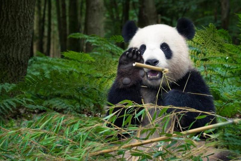 - Хотя они медведи и имеют части тела, подходящие для употребления в пищу мяса, гигантские панды в основном едят бамбук, потому что они окружены им.