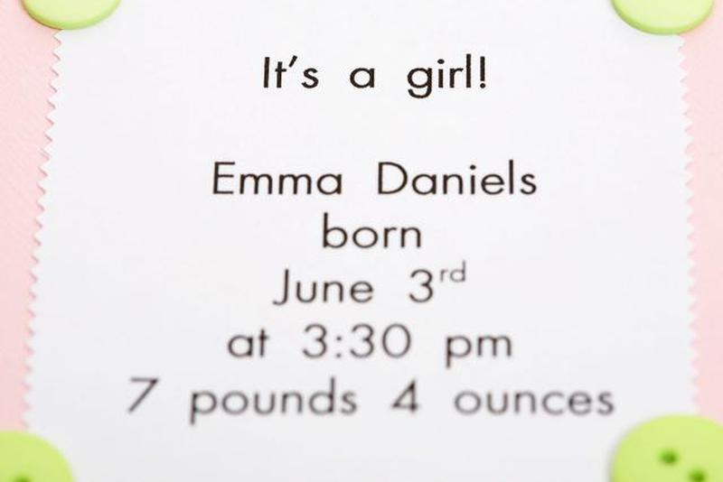 Традиционные объявления о рождении создаются с точки зрения молодых родителей и содержат приятный, простой язык и базовую статистику ребенка.