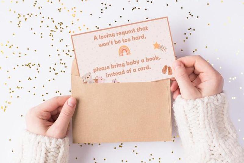 Если люди приносят книгу вместо открытки, они могут задаться вопросом, является ли книга подарком? Ответ — нет. Книга находится на месте карты. В большинстве случаев все равно потребуется подарок. Наряду с вкладышем «Принесите книгу» обязательно включите вторую вкладыш с приглашением, которое включает информацию о том, где зарегистрированы родители, или Как написать идеальное приветствие в реестре ребенка в конце самого приглашения.
