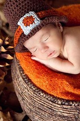 - Новорожденные и младенцы будут выглядеть восхитительно в вязаной крючком шляпе, подобной той, что изображена на выкройке детской шляпы-пилигрима, которая продается за 5 долларов. Эта детская шапка Little Turkey также доступна по цене около 30 долларов.