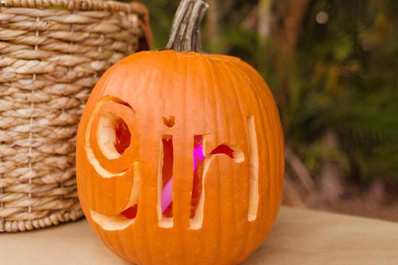 На одной стороне тыквы напишите «мальчик или девочка» или создайте дизайн с вопросительным знаком. На тыльной стороне тыквы вырежьте слово «мальчик» или «девочка». Когда придет время рассказать миру, что у вас есть, просто переверните тыкву! Так просто и мило.