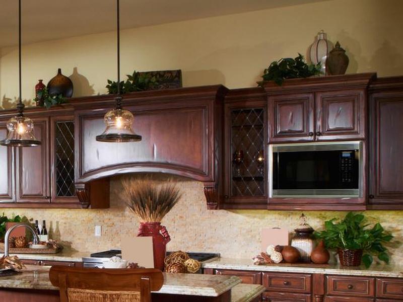 Разместите декоративные предметы над кухонными шкафами, чтобы повторить стиль вашей кухни, такой как колониальный , ретро или современный. Не позволяйте пространству пропадать зря, если оно может улучшить дизайн вашей кухни.