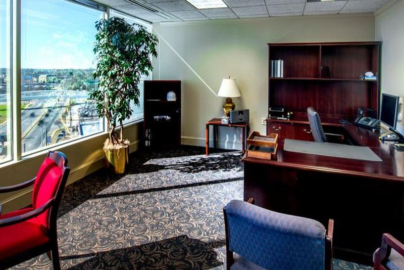 В этом конференц-зале акцентная стена темно-серого цвета с доской, на которой происходит решение проблем. Это отличный цвет для таких задач. Психологическое воздействие темно-серого цвета вызывает и поддерживает способность решать проблемы. Используйте этот цвет экономно, например, для акцентной стены, чтобы офис не стал мрачным и депрессивным.