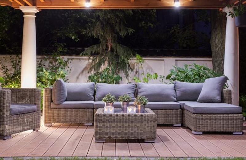 - Прожекторы над головой и освещение из обнесенного стеной сада за палубой добавляют романтическую нотку для вечернего использования.