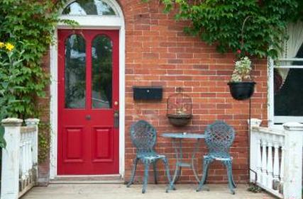Мебель: если у вас есть большой навес или крыльцо перед входной дверью, вы можете продолжить украшать входную дверь соответствующей мебелью, начиная от обветренной скамьи, белоснежных качалок или стульев из кованого железа. Не забудьте добавить атмосферостойкие ткани для всплесков цвета.