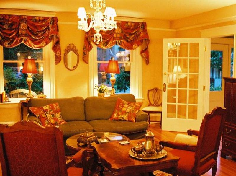- Используйте шторы, а не жалюзи, и снова выбирайте цветочные узоры или богатые ткани, такие как бархат.