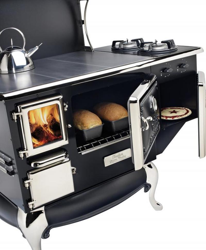 Печи Ashland Cook Stoves — это простые классические дровяные печи, которые подойдут для кухни в стиле кантри и загородного дома. Они имеют фарфоровую отделку с резервуаром из нержавеющей стали сверху. У них есть дополнительный выход на воду для горячего водоснабжения и простая в использовании плита с термостатом. Дизайн гладкий и простой с акцентами из нержавеющей стали. Цены на базовые модели начинаются примерно с 2400 долларов.