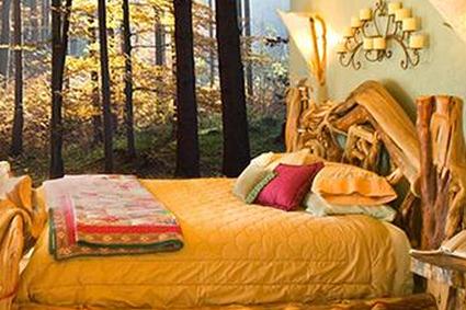 Один из самых визуально привлекательных дизайнов спальни в лесной тематике — фотообои или настенные росписи. Относитесь к этой стене так же, как к большому окну, когда дело доходит до размещения вокруг нее других предметов мебели.