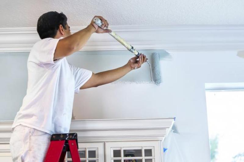 Дайте потолку и стенам высохнуть, прежде чем красить отделку.