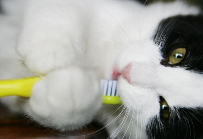 - Зубная щетка для кошки : зубная щетка для человека будет слишком большой.