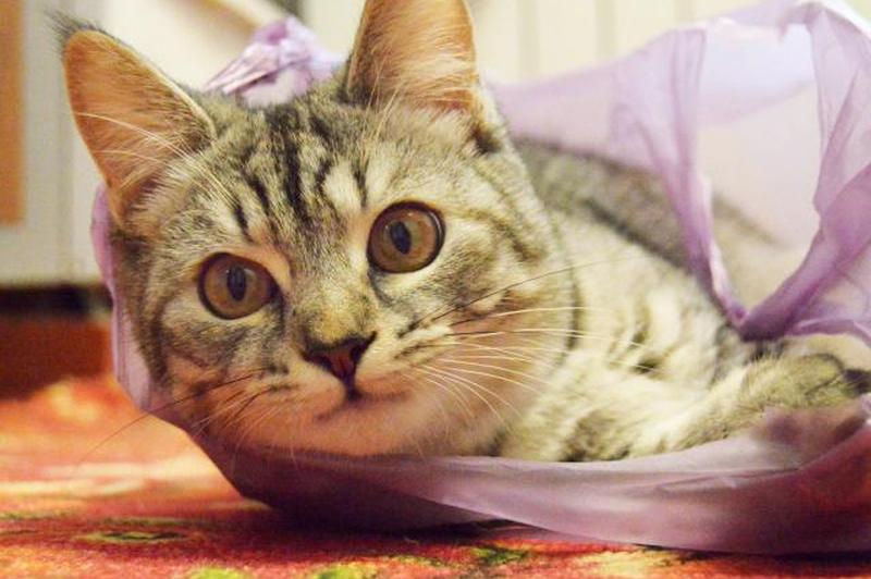 Отведите кошку подальше от пластиковых пакетов