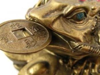 Трехлапая жаба является благоприятным символом богатства. Как и у черепахи-дракона, у этой также есть китайская монета во рту.