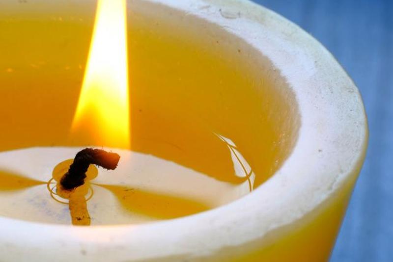 - Прежде чем зажигать фитиль, поставьте свечу на тарелку или плоский подсвечник.