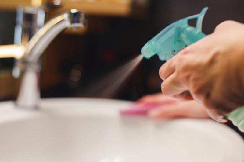 Очистите столешницы и раковины смесью чистящего уксуса с водой в соотношении 1: 3 из пульверизатора.