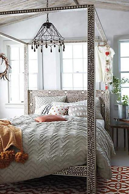 Anthropologie предлагает множество отличных вариантов постельного белья. Например, вы можете использовать пуховое одеяло, одеяло или покрывало только с подогнанной простыней. Они рассматривают возможность добавления пары подходящих имитаций.