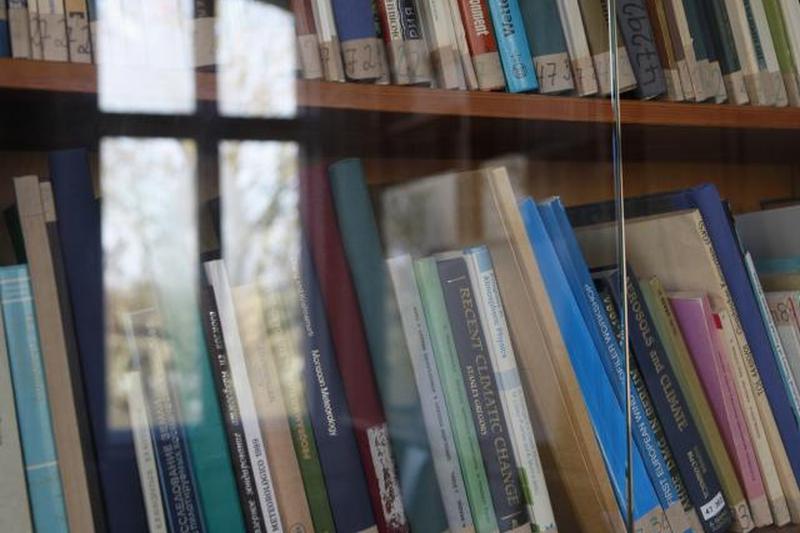 Разместите книги за стеклянными дверцами