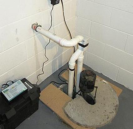 - Резервный водоотливной насос Hydropump RH1400 с питанием от батареи . Этот сверхмощный насос можно установить на полу или стене рядом с отстойником.