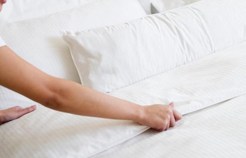 - Если вы хотите использовать одеяло, положите его на верхнюю простыню и закрепите, используя технику больничного угла.