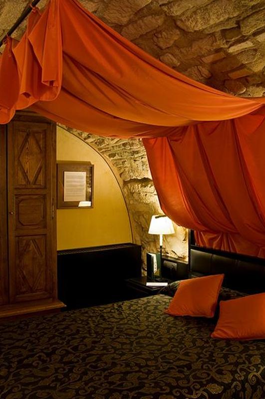 Эта кровать в замке имеет старинную средневековую атмосферу, которая дополняет остальную часть декора. Чтобы получить вид, повесьте карниз для штор с потолка над изголовьем вашей кровати, а второй — чуть выше изголовья. Накиньте ткань или занавеску между двумя стержнями, закрепив ее внизу под изголовьем.