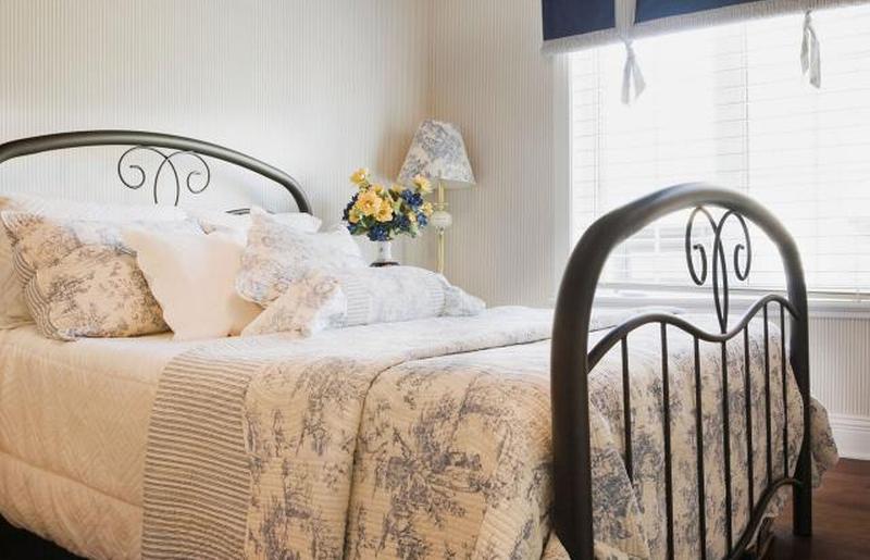 Если у вас есть мебель для спальни в старинном стиле или в стиле реплики, вы можете создать отличный контраст между темной отделкой и деревенской стариной с помощью светлого и нежного цветочного постельного белья.