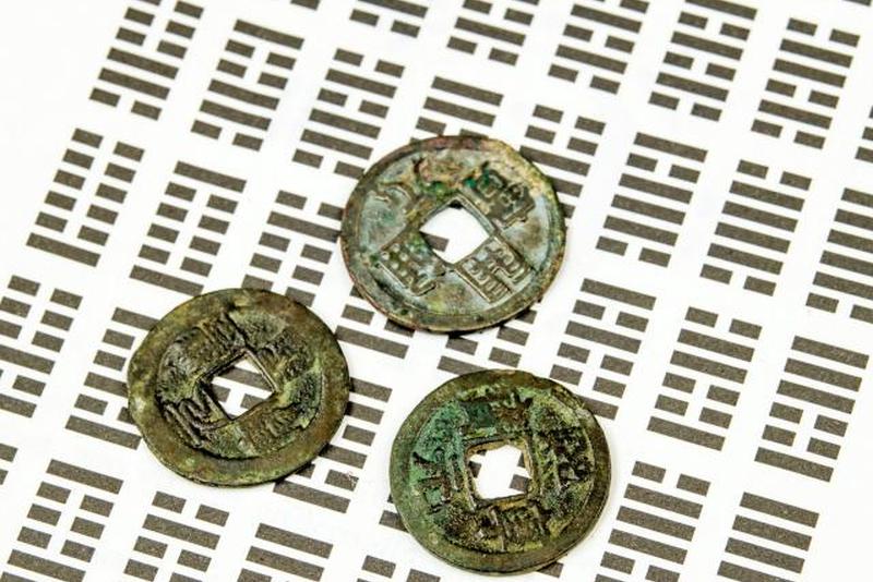 Со временем три одинаковые бронзовые монеты заменили три палочки тысячелистника. У монет одна сторона обозначена как инь, а другая — как ян. Подбрасывание монет, а не палочек, дало более случайный результат. Результат подбрасывания монеты определяет, какой тип линии расположен на гексаграмме. Чтобы найти ответ на вопрос, ищущий подбрасывает монеты шесть раз. Каждый раз результат подбрасывания записывается либо прерывистой, либо сплошной линией. Начиная с первого броска результат записывается в нижней строке гексаграммы. При каждом подбрасывании монеты соответствующая строка записывается следующей строкой выше. Как только все шесть строк записаны, полученная гексаграмма сопоставляется с соответствующим эссе в И Цзин, и искатель получает ответ на вопрос.