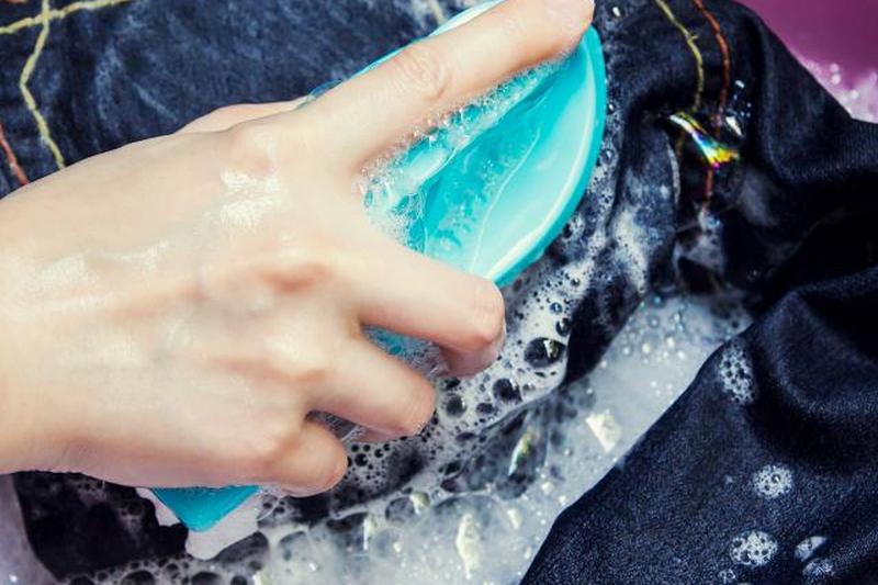 В большинстве случаев вам просто нужно избавиться от неприятного запаха и пятен между чистками. Возьмите немного моющего средства и протрите джинсы, чтобы они пахли свежестью и держались вечно.