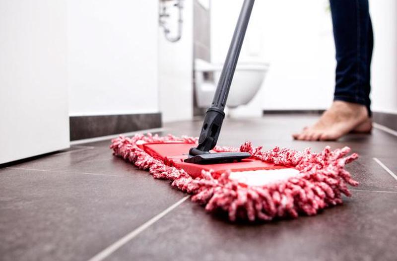 - Протрите обработанный участок шваброй. Легче всего распылять и мыть шваброй по частям.