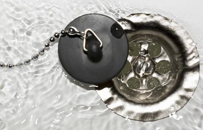 - Если на пробке или в сливе остались волосы, удалите их плоскогубцами или рукой.