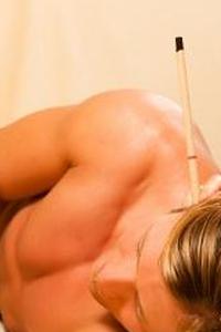 - Администратор очень осторожно помещает незажженный конец ушной свечи в ухо получателя и слегка поворачивает его, чтобы закрепить свечу на месте в ушном проходе. Когда свеча правильно поставлена на место, получатель слышит приятный треск и шелест.
