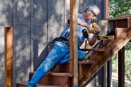 - Поместите доску на верхнюю часть задней части каждой ступени и с помощью палубных шурупов прикрепите ее к подъему стрингеров.