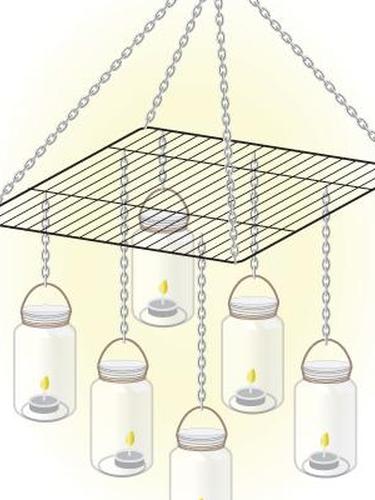 - Если вы чувствуете себя более изобретательно, поставьте еще несколько банок на решетку с помощью проволоки. Это даст вам двухуровневый дизайн.