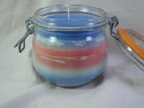 - По прошествии часа вы заметите, что вокруг фитиля образовалось небольшое углубление. Разогрейте оставшийся воск последнего залитого цвета и заполните углубление.