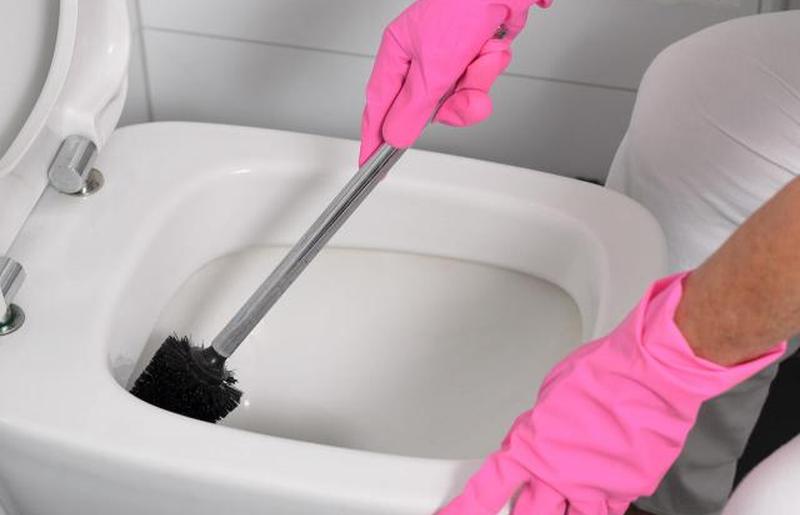 - Используйте ершик для унитаза, чтобы очистить пятна от воды.