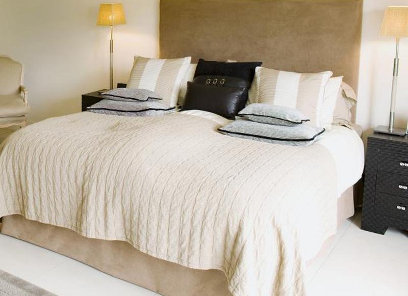 - Выберите один цвет, который будет акцентным цветом для пары имитаций подушек, заметным цветом стеганого одеяла, пледа и / или простыни с соответствующими наволочками.