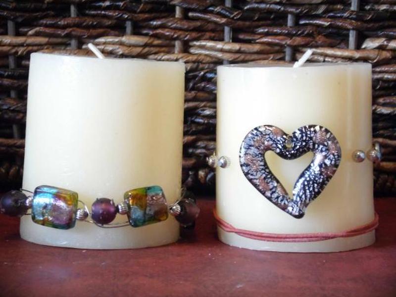 Чтобы украсить свечу бусинами, не повредив свечу и не меняя ее навсегда, подумайте о том, чтобы сделать обертку из бисера для свечи в банке. Венок из бисера легко сделать с жесткой проволокой.