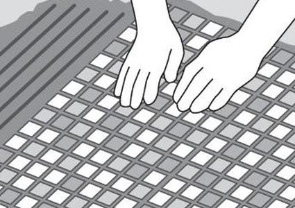 Разрежьте ножницами сетку или бумагу между плитками, чтобы они подходили по краям укладки.
