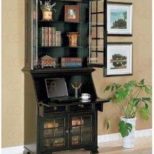Комод с откидным столом — это относительно высокий и тонкий предмет мебели, предназначенный для установки у стены. Обычно он имеет одну или две полки вверху и панель посередине, которую можно выдвинуть, чтобы превратить в рабочую поверхность, которую можно использовать для письма, набора текста на портативном компьютере, просмотра отчетов, оплаты счетов и других задач. Некоторые шкафы имеют открытые полки, в то время как другие имеют стеклянные дверцы, которые можно закрывать и открывать, но при этом содержимое остается видимым. В некоторых случаях под панелью стола имеется дополнительное открытое или закрытое пространство для хранения.