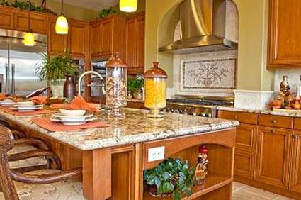 Например, кухня с белыми или кремовыми шкафчиками на стенах может быть дополнена состаренным, окрашенным в желтый или синий цвет островом в центре комнаты. Цвет на острове можно подобрать в плитке фартука, цвете стен или драпировках, чтобы объединить комнату и придать ей глубину.