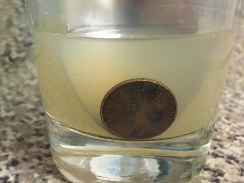 - Положите по пенни в каждую из жидкостей и убедитесь, что она полностью погружена.