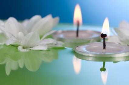 - Светильники в форме лотоса, свечи белого цвета или цвета слоновой кости, четыре дюйма в высоту и пять дюймов в диаметре.