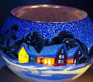 - Одиночные подсвечники : одиночный подсвечник, обычно для вотивных свечей , может быть выгравирован с изображением деревенской сцены силуэта по окружности, создавая целую освещенную деревню в одном простом украшении.